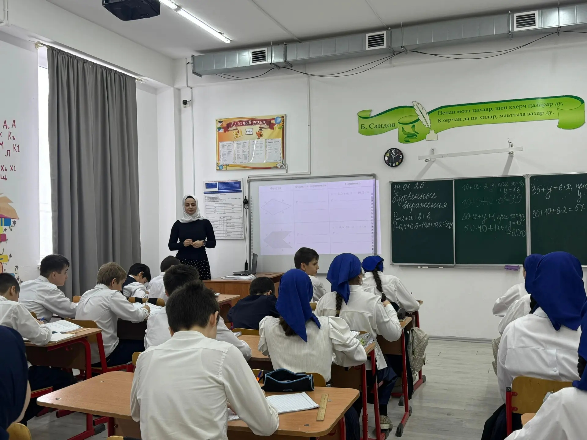 Сегодня, 14.01.2026г, заместитель директора по УВР Гудаева Л.Х. посетила уроки учителей Алиевой Р.А.,Дакаевой А.У. в 8 «б», 6 «б» кл. по предмету математика.