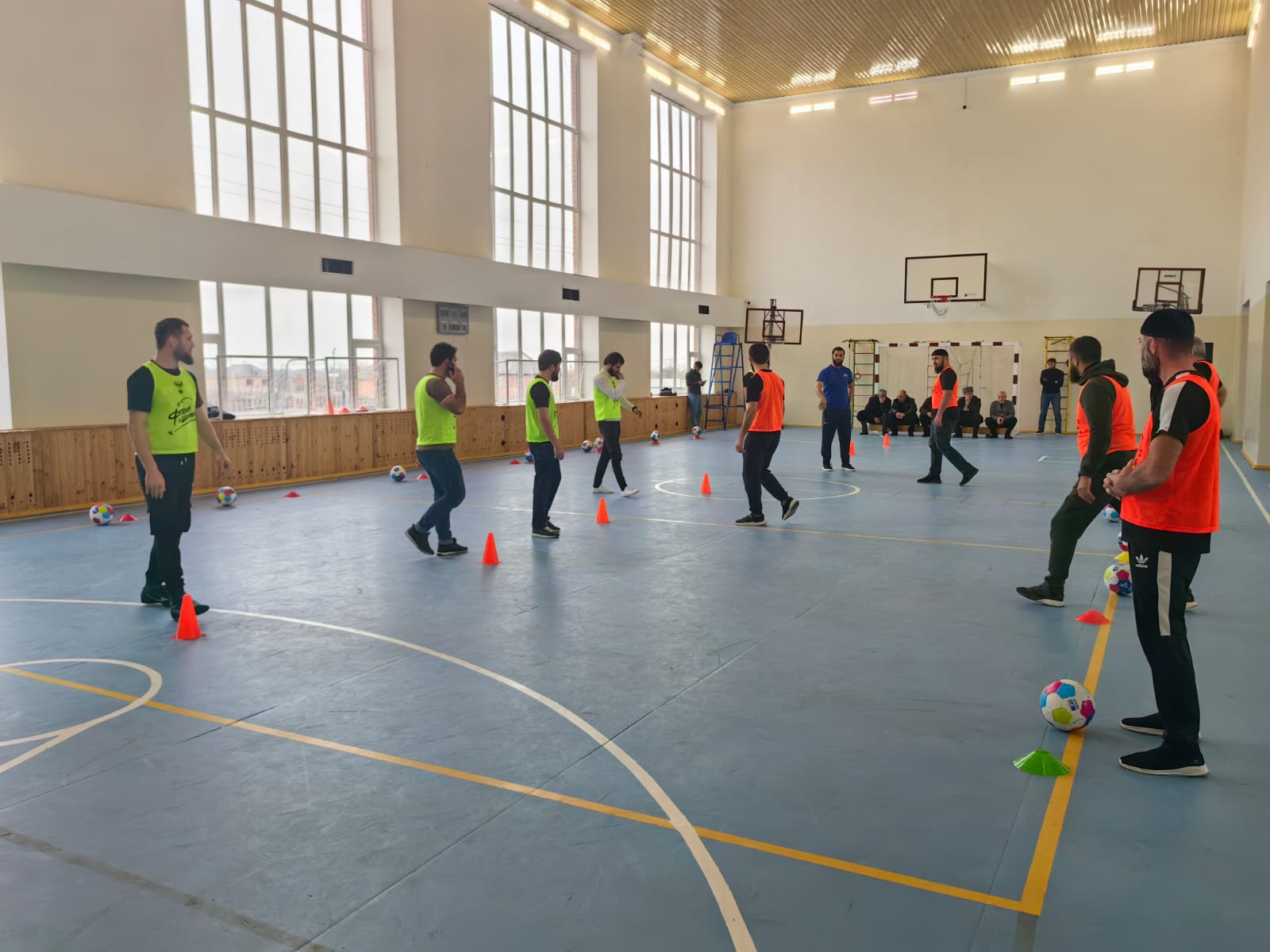 На практике рассматривались форматы проведения уроков. После теоретического ознакомления участники перешли в спортивный зал, где были проведены обучающие и игровые упражнения. Учителя освоили такие элементы, как передвижение с мячом, финты, ведение и передача мяча, что соответствует основным формам урока.