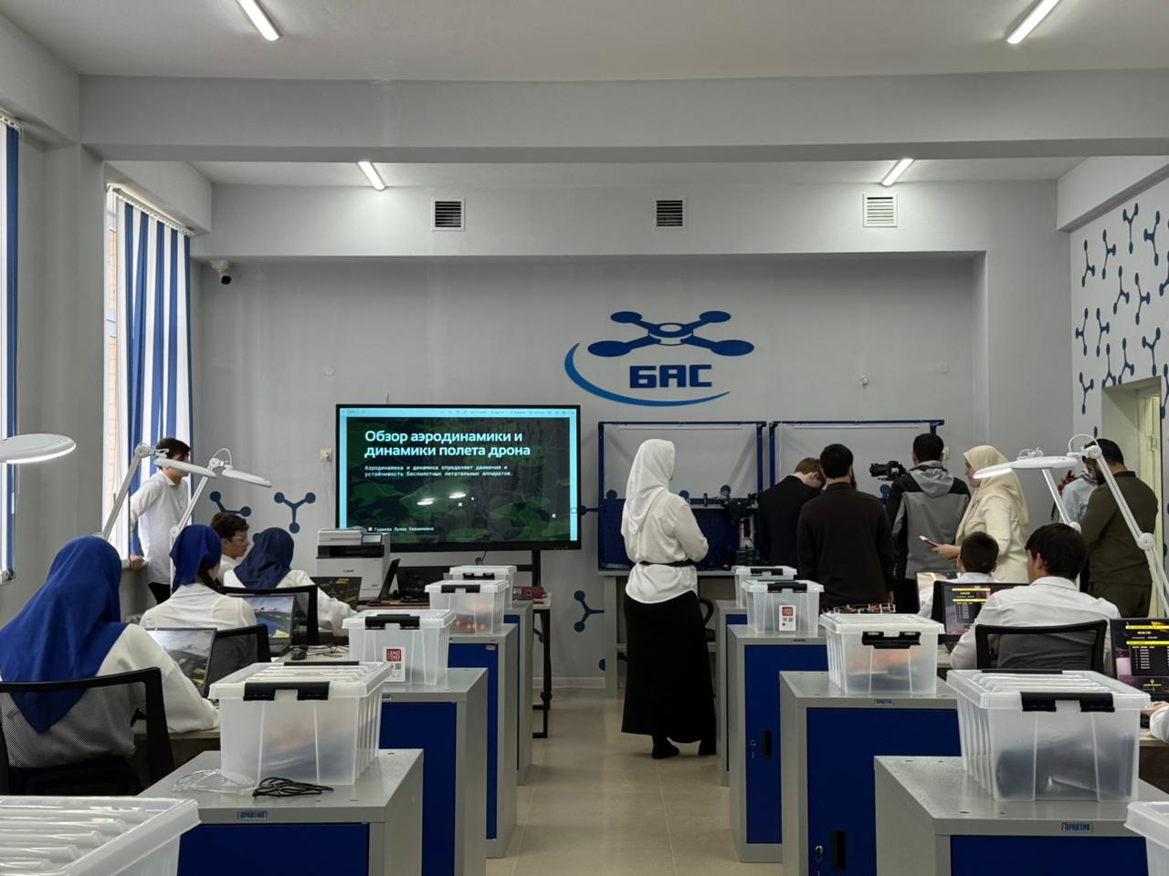 Урок был направлен на ознакомление учащихся с основными принципами, определяющими поведение беспилотных летательных аппаратов в воздухе. Гудаева Л.Х. начала занятие с объяснения фундаментальных понятий аэродинамики, таких как подъемная сила, сопротивление, тяга и вес, уделив особое внимание их влиянию на стабильность и маневренность дронов. Для наглядности использовались интерактивные модели и видеоролики, демонстрирующие взаимодействие воздушных потоков с элементами конструкции дрона.